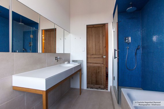 Salle-de-bains-avec-niche-bleue-et-vasque-en-corian-Hegenbart-Raynaud-design-intérieur4 Previous Next Publié février 2015 à 1200 × 800 dans Une petite salle de bain élégante et confortable Baignoire et douche de pluie dans une niche revétue de mosaïque J’aime chargement…